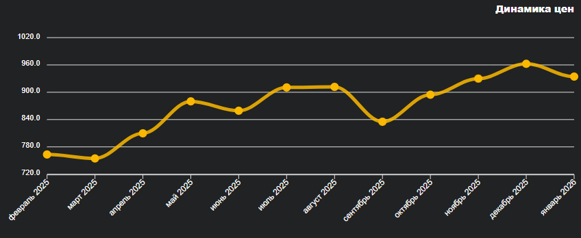 Средняя цена метра в городе по итогам января была 934$ (или -28$) за месяц. Картина достаточно интересная, планка в 1000 долларов за метр немного отдалилась, но глобально рынок показывает что метр в городе начинает стоить уже совсем другие цифры.