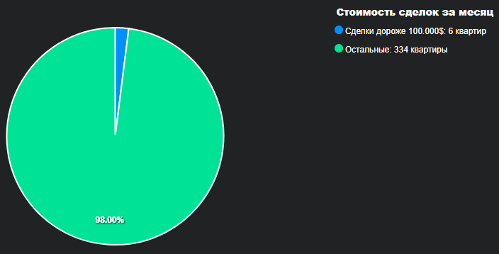 самая дорогая по стоимости квартира была продана на ул.Воинов-Интернационалистов, ее площадь была чуть более 70 кв.м., и располагалась она в доме 2021 г.п., за нее заплатили около 120.000$.